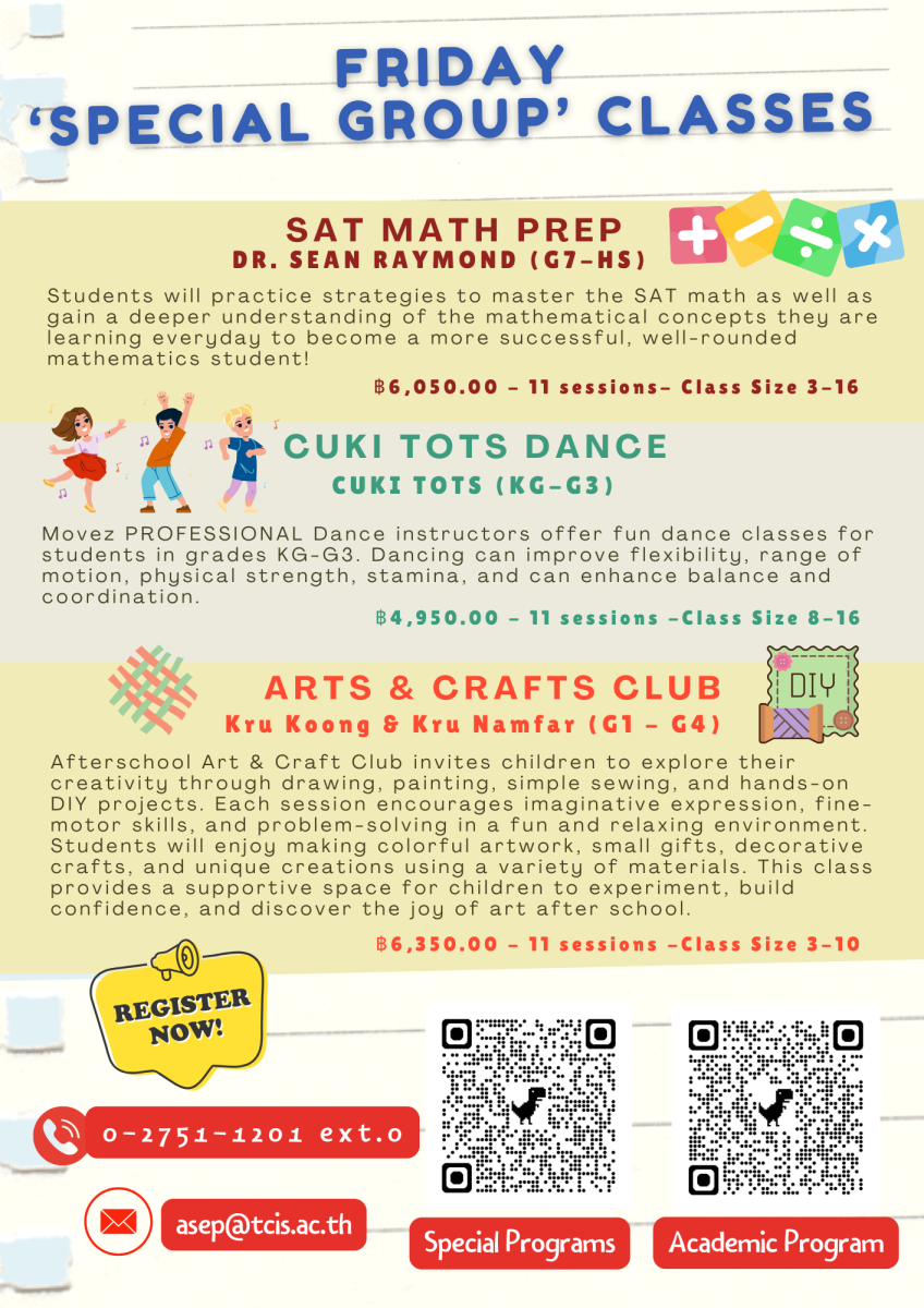 ASEP registrations will be done through this website. Please click the relevant program registration form below. After sign-up is completed and submitted, you will receive a confirmation email with payment details. All payments are to be made to the TCIS Cashier by cash, credit or bank transfer.
