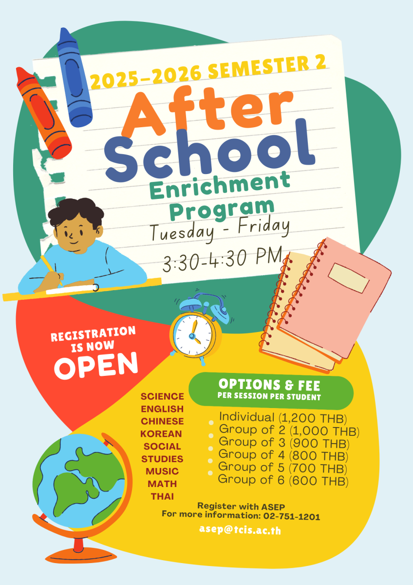 ASEP registrations will be done through this website. Please click the relevant program registration form below. After sign-up is completed and submitted, you will receive a confirmation email with payment details. All payments are to be made to the TCIS Cashier by cash, credit or bank transfer.